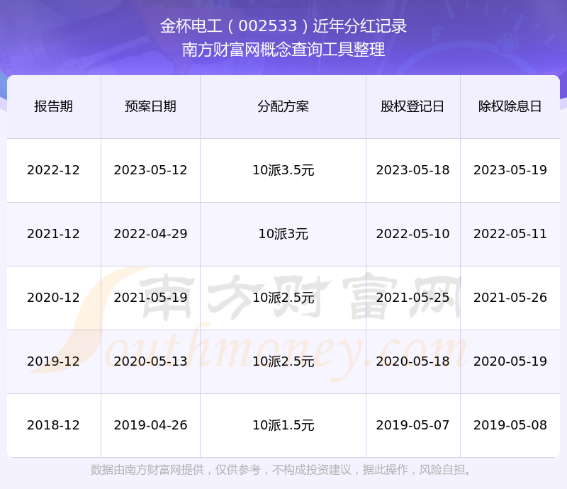 一、金杯電工(002533)股票分紅記錄