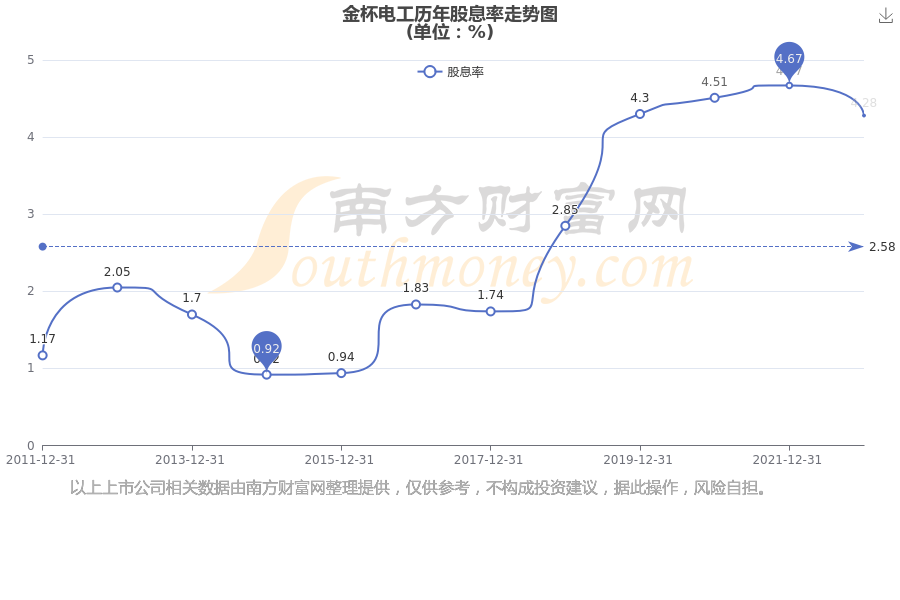 近年金杯電工年度股息率走勢(shì)如下圖: