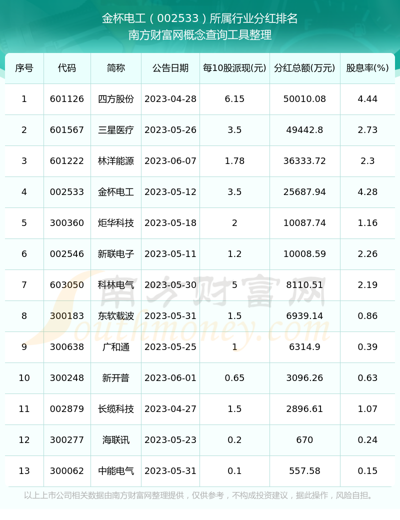 二、金杯電工002533行業(yè)分紅排名