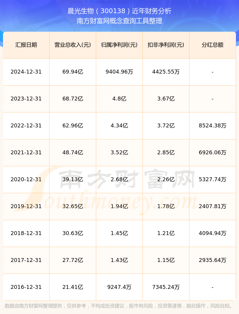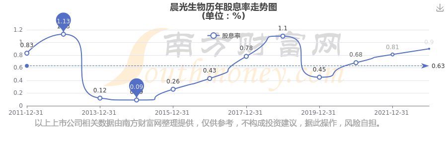 晨光生物最新一次公布的分紅方案:10派1.6元。