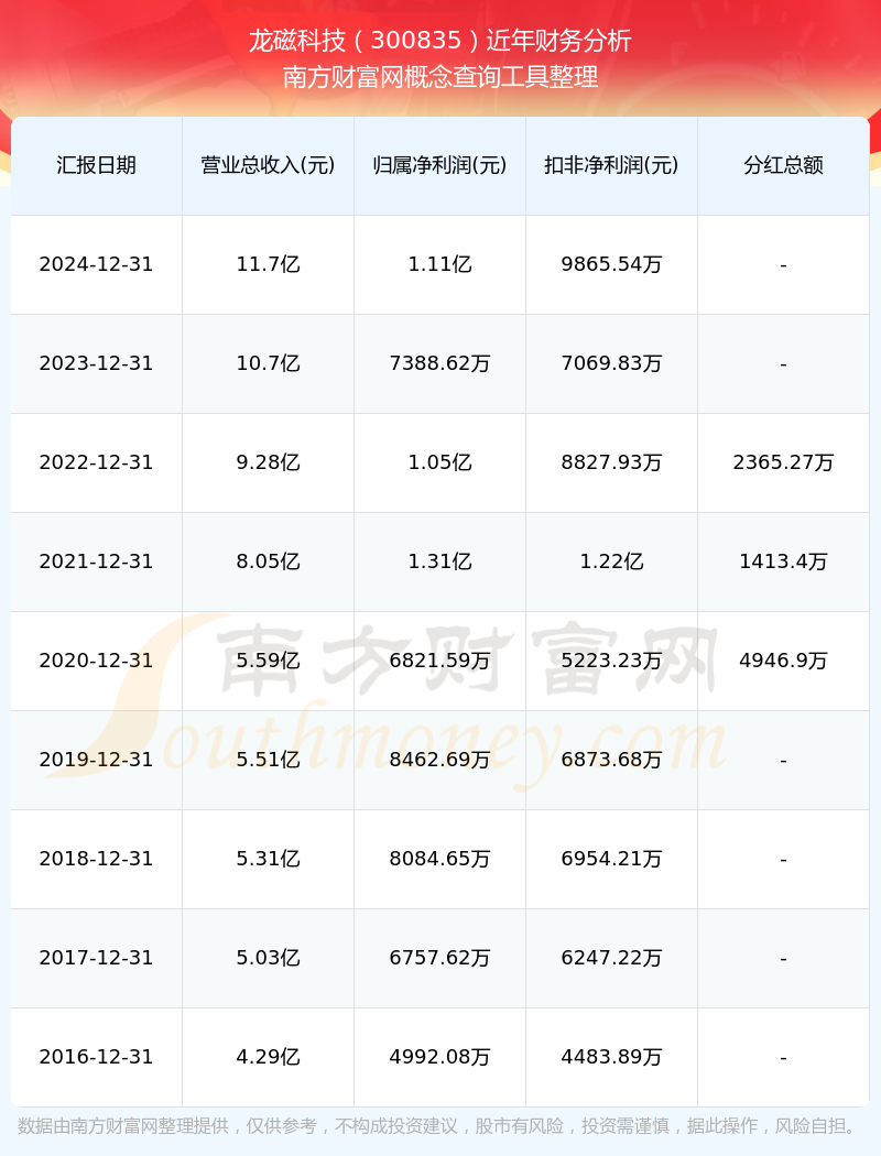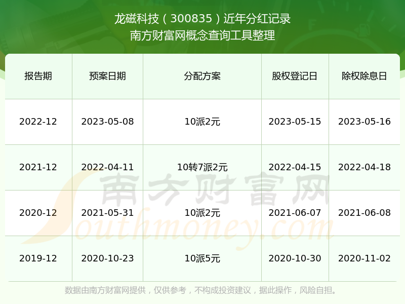 龍磁科技最新一次公布的分紅方案為10派2元。本次權益分派股權登記日為2023年5月15日,除權除息日為2023年5月16日,派息日為2023年5月16日。