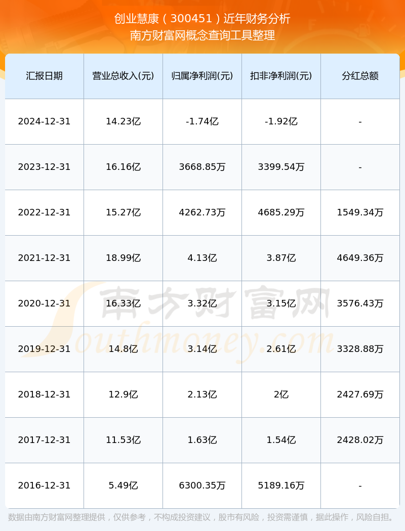 創(chuàng)業(yè)慧康公司2024年實(shí)現(xiàn)營業(yè)收入14.23億元,同比增長-11.96%;凈利潤-1.74億元,同比增長-572.96%;毛利率45.18%。