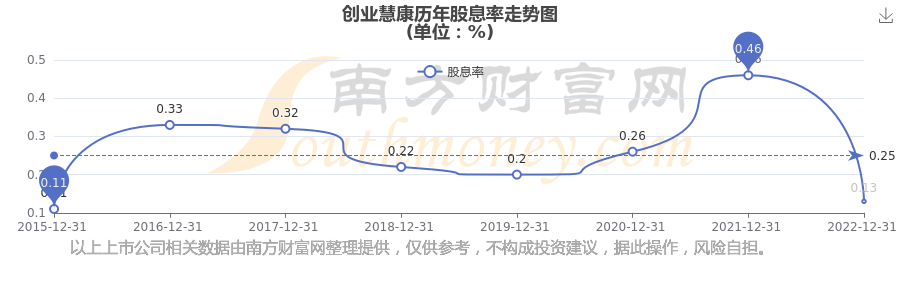 創(chuàng)業(yè)慧康歷年股息率走勢如下圖:
