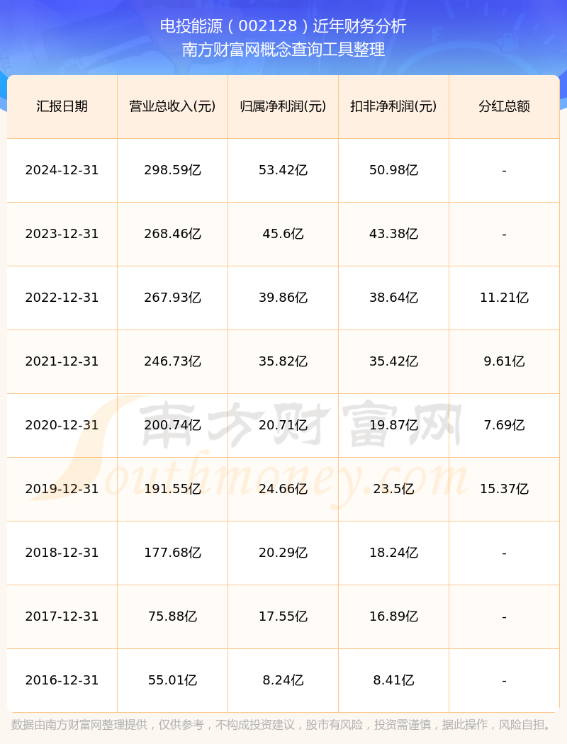 2024年電投能源總營收298.59億,同比增長11.23%;凈利潤53.42億,同比增長17.15%;銷售毛利率34.05%。