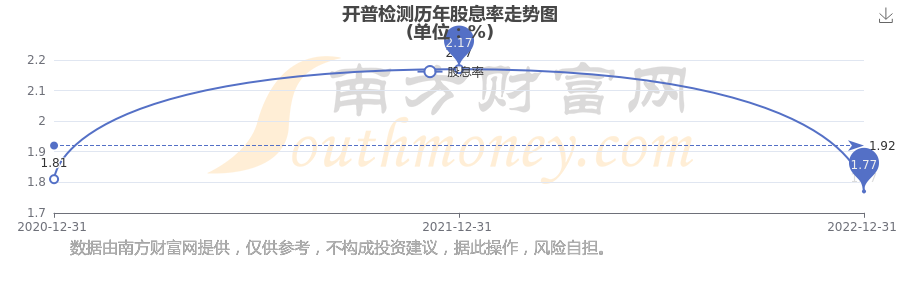 開(kāi)普檢測(cè)歷年股息率走勢(shì)如下圖: