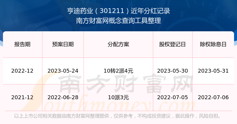 亨迪藥業(yè)歷年分紅派息情況如下表所示: