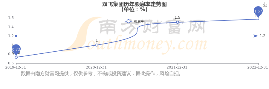 雙飛集團(tuán)歷年股息率走勢如下圖: