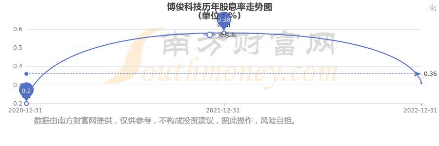 博俊科技?xì)v年股息率走勢(shì)如下圖: