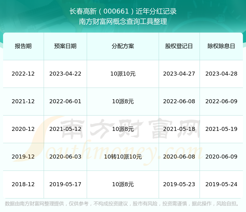 近年長(zhǎng)春高新分紅派息情況如下表所示: