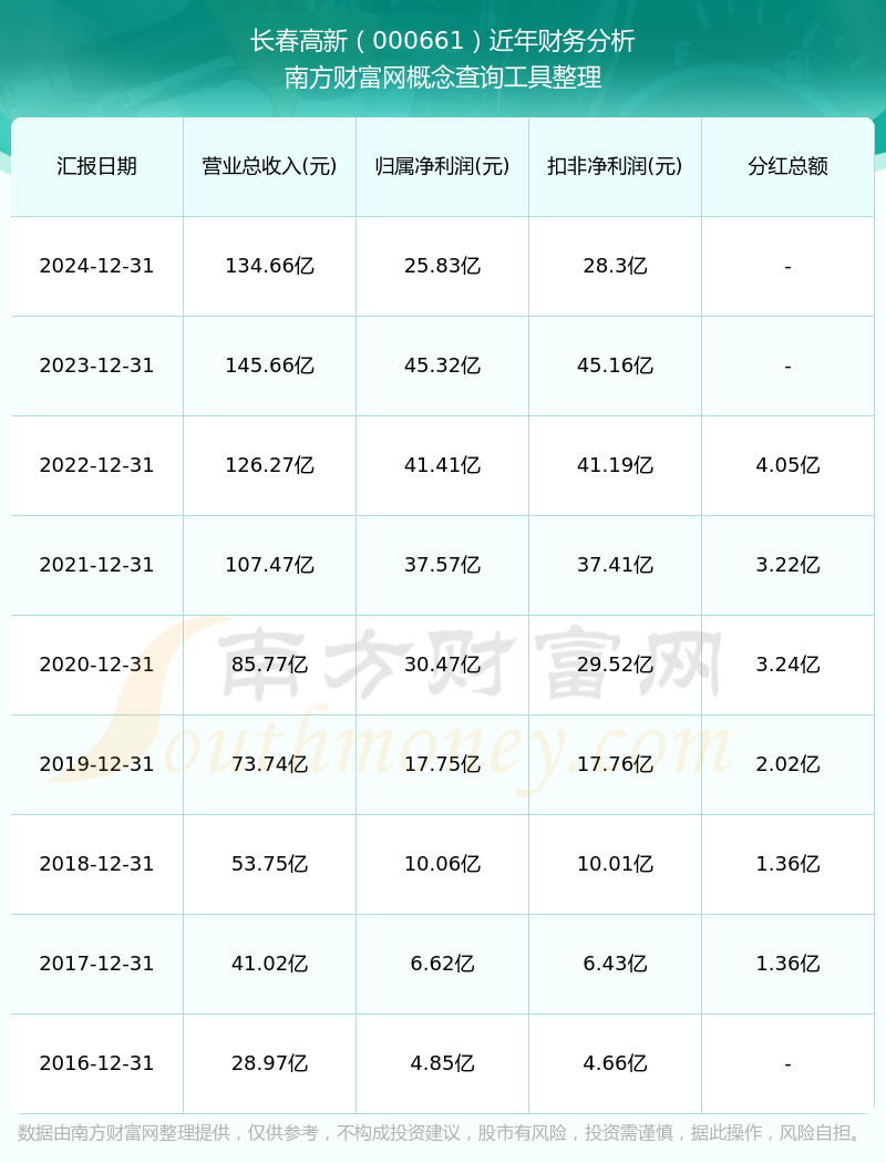 長(zhǎng)春高新公司2024年實(shí)現(xiàn)營(yíng)業(yè)收入134.66億元,同比增長(zhǎng)-7.55%;凈利潤(rùn)25.83億元,同比增長(zhǎng)-43.01%;毛利率85.72%。