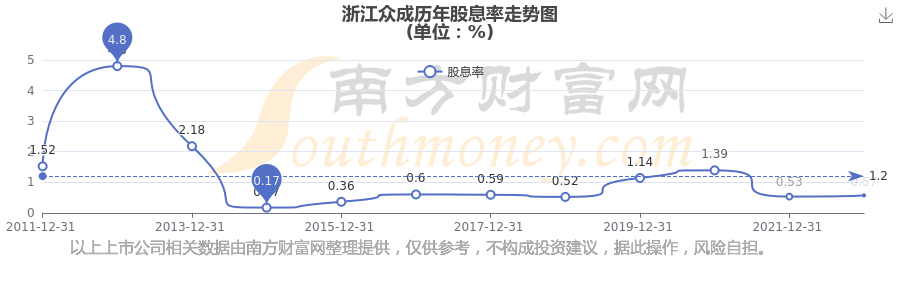 浙江眾成歷年股息率走勢(shì)如下圖: