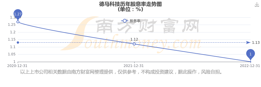 德馬科技?xì)v年股息率走勢(shì)如下圖: