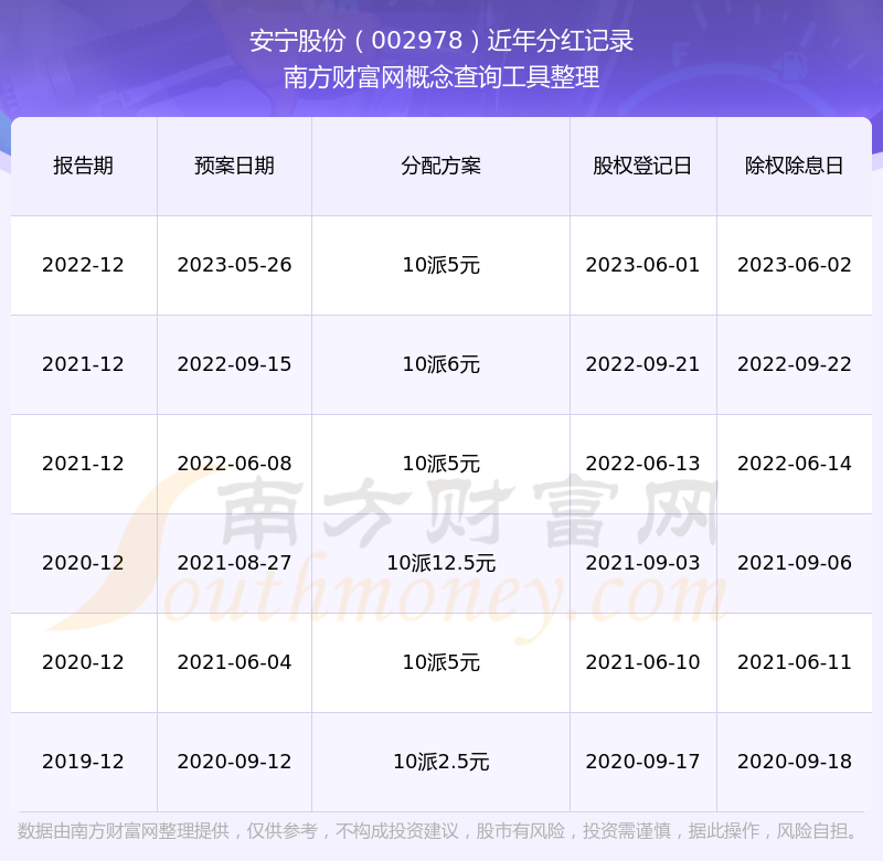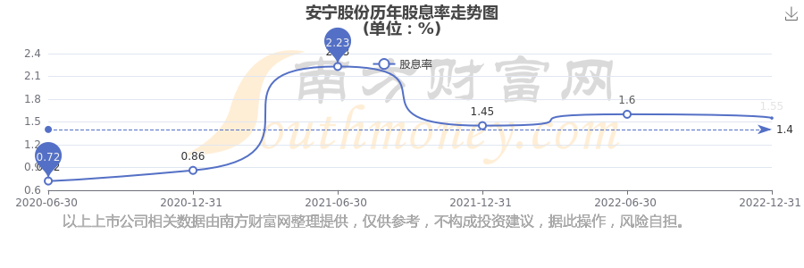 安寧股份最新一次公布的分紅方案為10派5元。本次權(quán)益分派股權(quán)登記日為2023年6月1日,除權(quán)除息日為2023年6月2日,派息日為2023年6月2日。