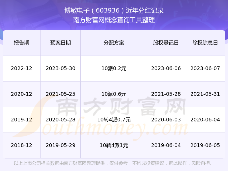 博敏電子最新一次公布的分紅方案:10派0.2元。