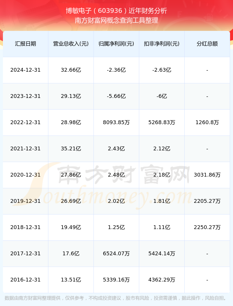 博敏電子公司2024年實(shí)現(xiàn)營業(yè)收入32.66億元,同比增長12.11%;凈利潤-2.36億元,同比增長58.29%;毛利率7.95%。