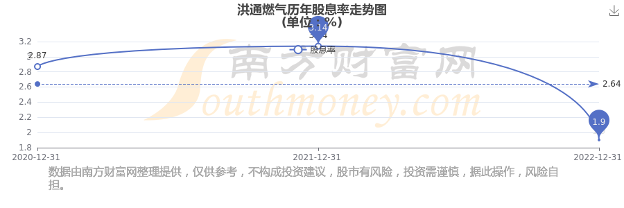 洪通燃?xì)鈿v年股息率走勢(shì)如下圖: