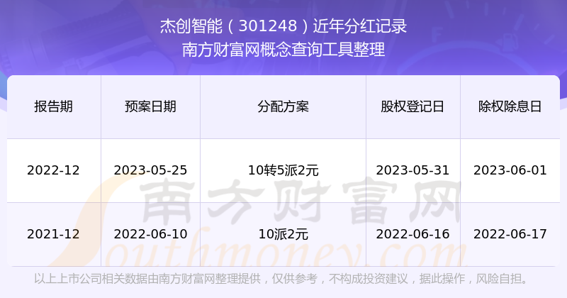 杰創(chuàng)智能最新一次公布的分紅方案為10轉(zhuǎn)5派2元。本次權(quán)益分派股權(quán)登記日為2023年5月31日,除權(quán)除息日為2023年6月1日,派息日為2023年6月1日。