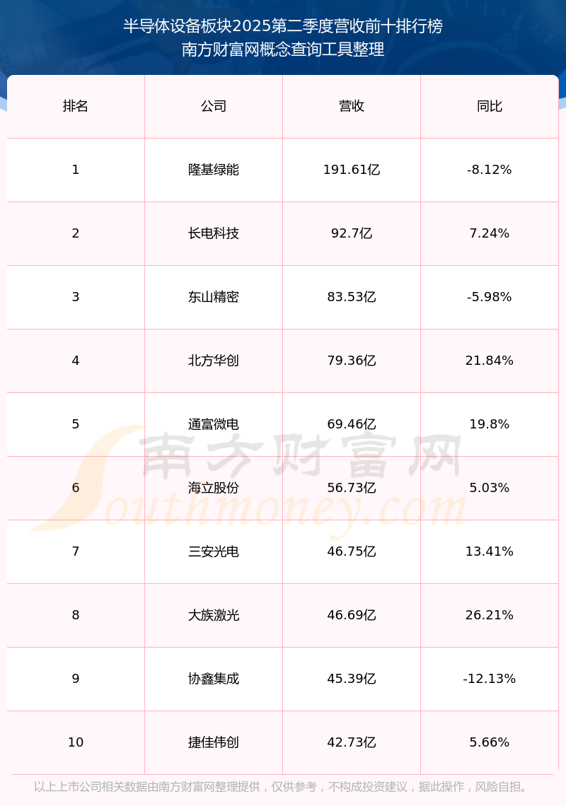 按照南方財(cái)富網(wǎng)概念查詢(xún)工具統(tǒng)計(jì),該股所屬板塊為半導(dǎo)體設(shè)備板塊,該板塊共有169只股票,屹唐股份2025第二季度營(yíng)收在該板塊中排名為第33名,該板塊2025第二季度營(yíng)收排名前十的股票如下表: