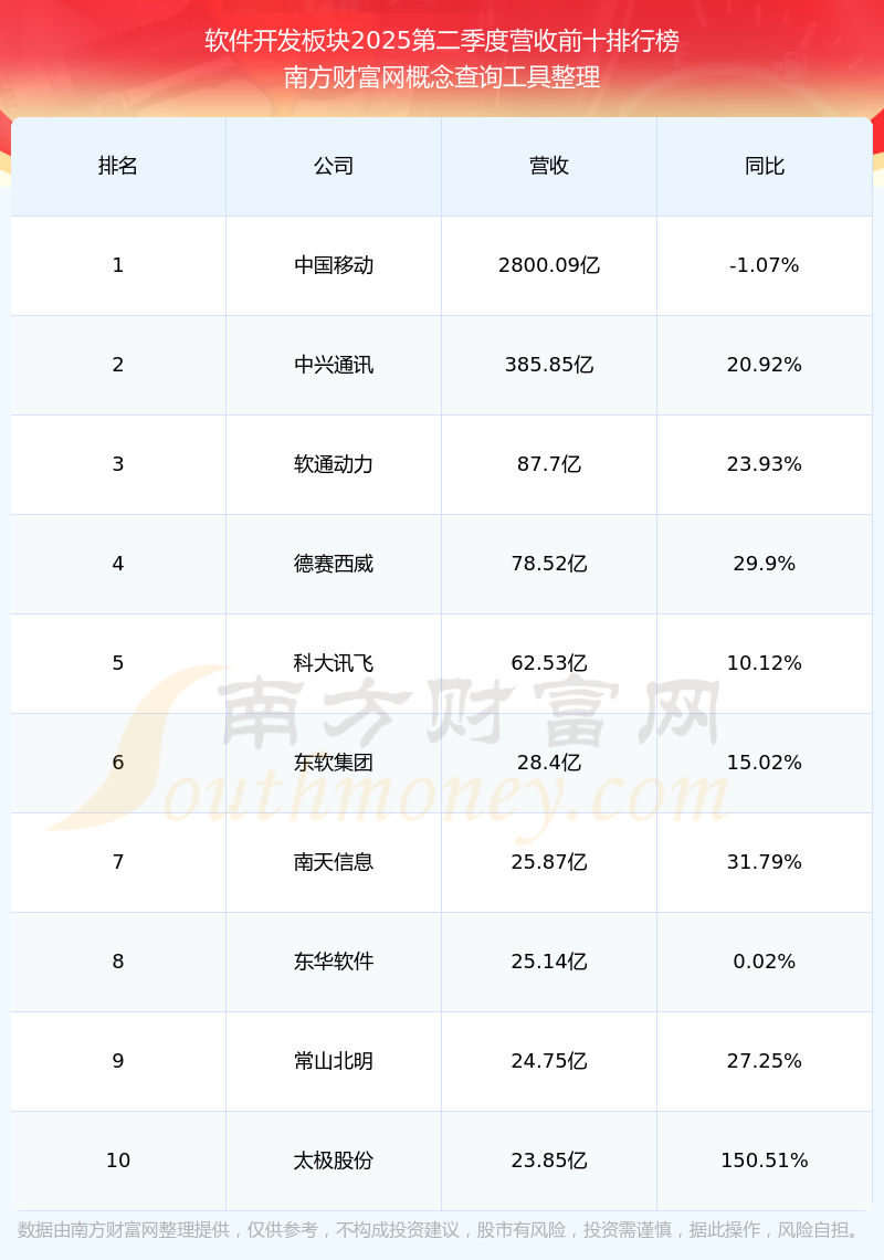 按照南方財(cái)富網(wǎng)概念查詢工具統(tǒng)計(jì),該股所屬板塊為軟件開發(fā)板塊,該板塊共有216只股票,霍萊沃2025第二季度營收在該板塊中排名為第216名,該板塊2025第二季度營收排名前十的股票如下表: