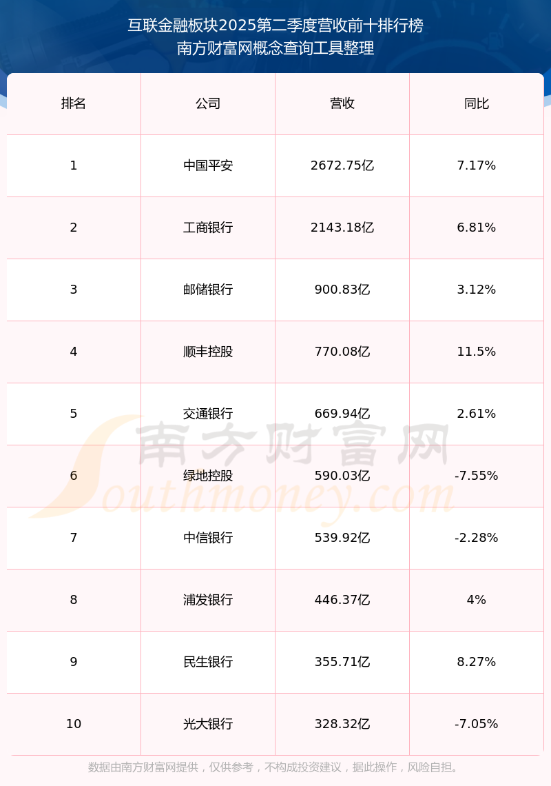 按照南方財(cái)富網(wǎng)概念查詢工具統(tǒng)計(jì),該股所屬板塊為互聯(lián)金融板塊,該板塊共有243只股票,浙商證券2025第二季度營收在該板塊中排名為第58名,該板塊2025第二季度營收排名前十的股票如下表: