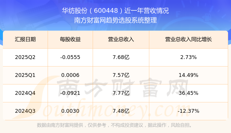 2025年第二季度,華紡股份營收同比2.73%,凈利潤同比-32045.96%。