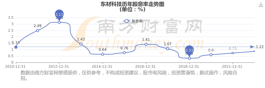 近年?yáng)|材科技年度股息率走勢(shì)如下圖: