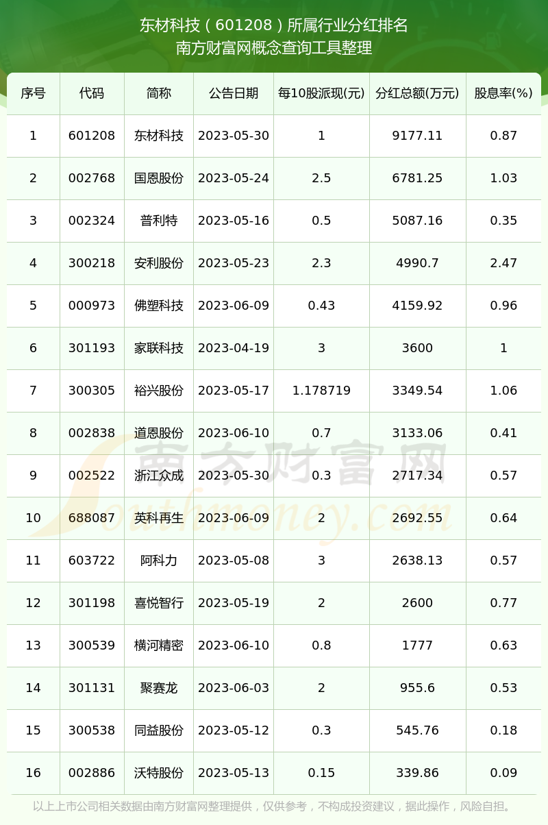 按照南方財(cái)富網(wǎng)趨勢(shì)選股系統(tǒng)統(tǒng)計(jì),東材科技所屬行業(yè)為塑料制品行業(yè),塑料制品行業(yè)分紅排名情況如下表: