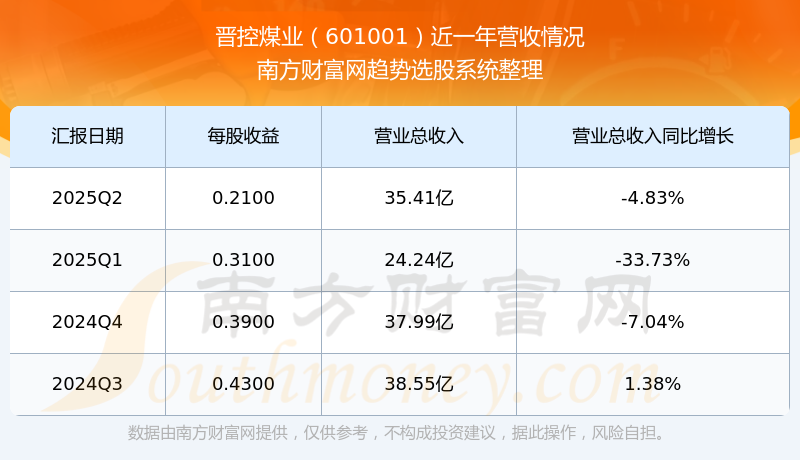 晉控煤業(yè)2025年第二季度財報顯示,公司主營收入35.41億元,同比-4.83%;歸母凈利潤3.64億元,同比-44.55%;扣非凈利潤3.61億元,同比-43.64%;