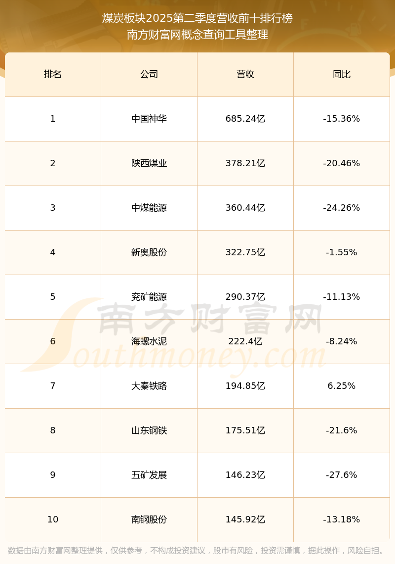 按照南方財富網(wǎng)概念查詢工具統(tǒng)計,該股所屬板塊為煤炭板塊,該板塊共有71只股票,晉控煤業(yè)2025第二季度營收在該板塊中排名為第34名,該板塊2025第二季度營收排名前十的股票如下表: