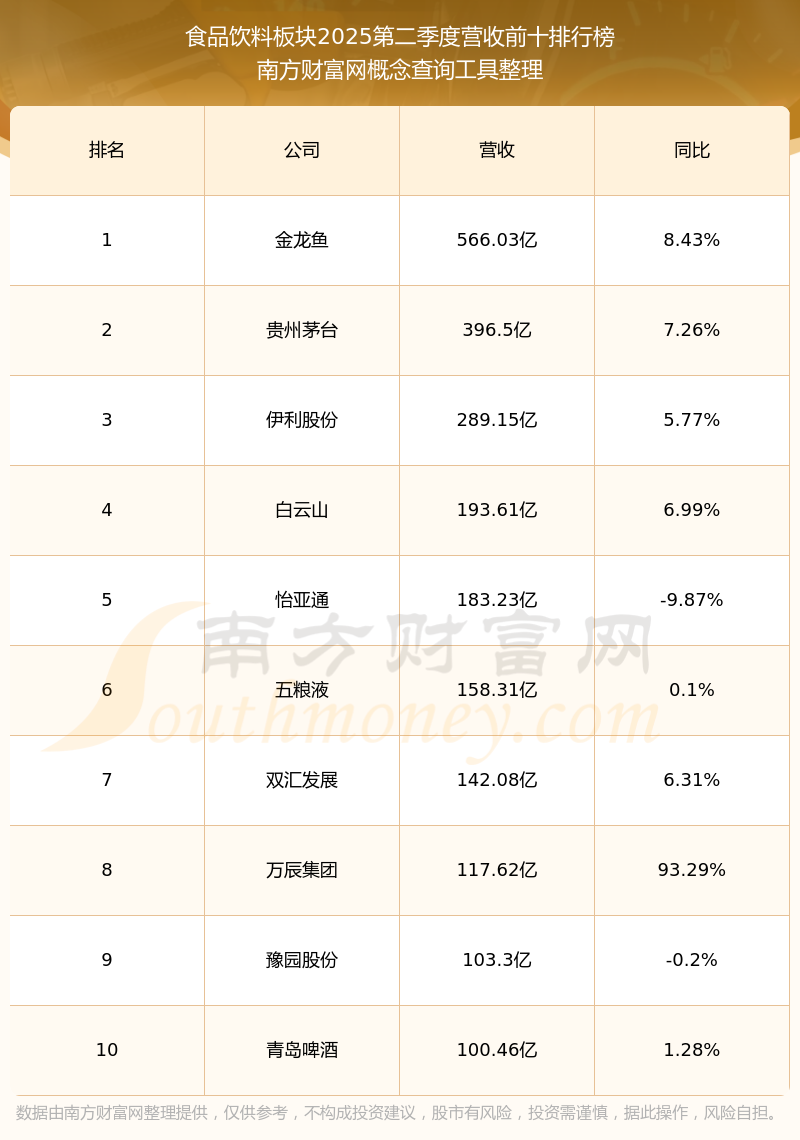 按照南方財富網(wǎng)概念查詢工具統(tǒng)計,該股所屬板塊為食品飲料板塊,該板塊共有251只股票,泉陽泉2025第二季度營收在該板塊中排名為第154名,該板塊2025第二季度營收排名前十的股票如下表: