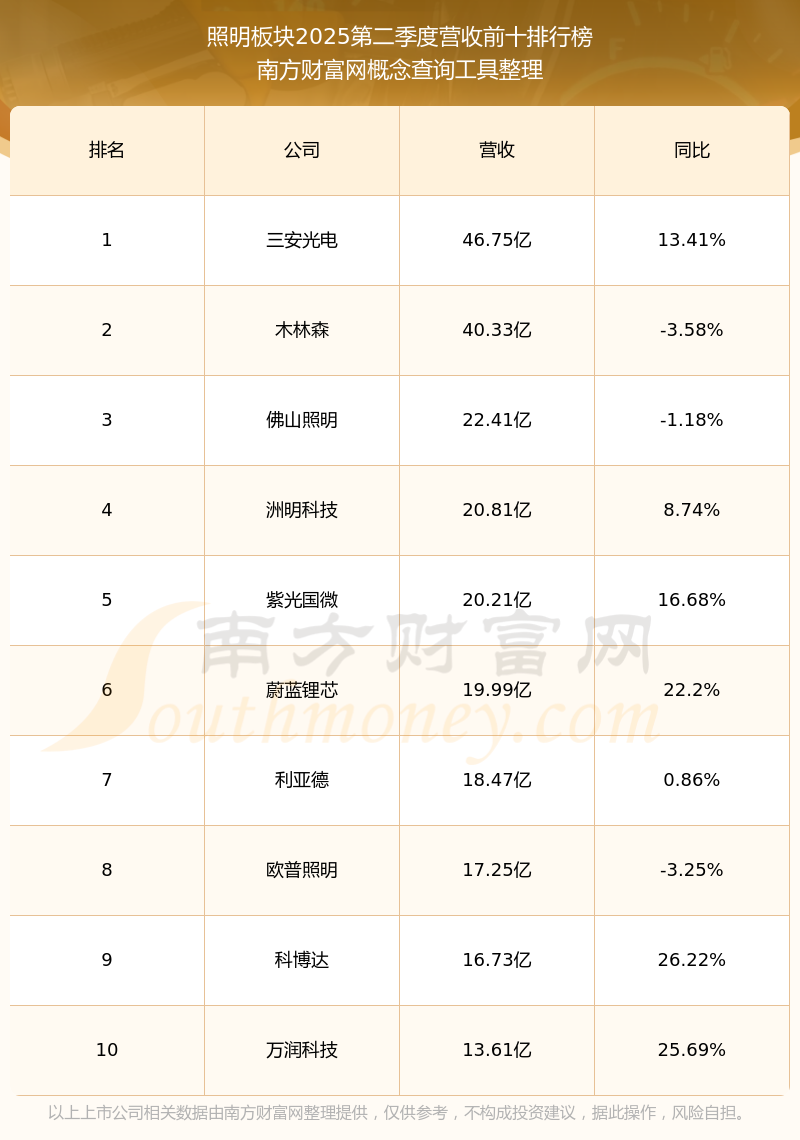 按照南方財富網(wǎng)概念查詢工具統(tǒng)計,該股所屬板塊為照明板塊,該板塊共有24只股票,立達信2025第二季度營收在該板塊中排名為第24名,該板塊2025第二季度營收排名前十的股票如下表: