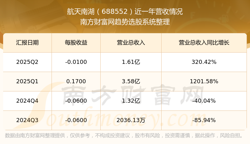 航天南湖2025年第二季度報(bào)告顯示,公司實(shí)現(xiàn)主營(yíng)業(yè)務(wù)收入1.61億元,較去年同期增長(zhǎng)320.42%;歸屬于母公司股東的凈利潤(rùn)為-356.14萬(wàn)元,同比增長(zhǎng)84.66%;扣除非經(jīng)常性損益后的凈利潤(rùn)為-450.8萬(wàn)元,同比增長(zhǎng)80.86%。