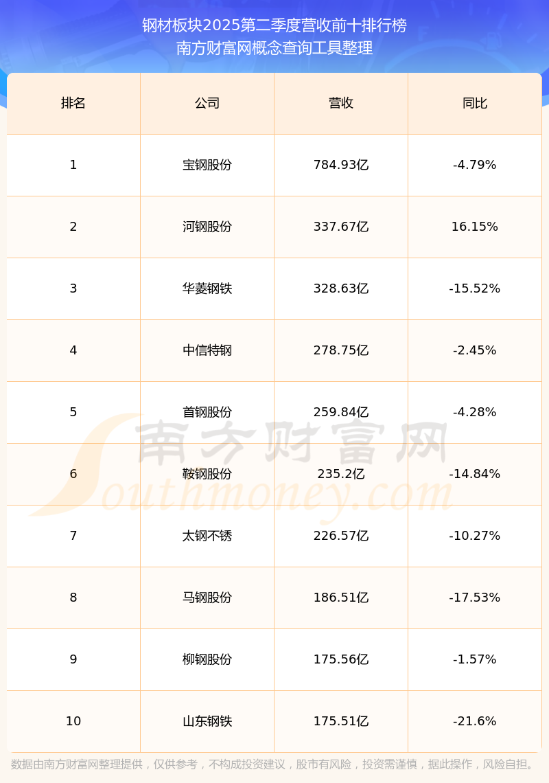 按照南方財(cái)富網(wǎng)概念查詢工具統(tǒng)計(jì),該股所屬板塊為鋼材板塊,該板塊共有30只股票,凌鋼股份2025第二季度營(yíng)收在該板塊中排名為第21名,該板塊2025第二季度營(yíng)收排名前十的股票如下表: