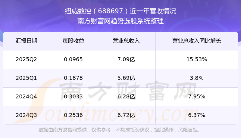 在2025年第二季度,紐威數(shù)控的業(yè)績表現(xiàn),主營業(yè)務(wù)收入達到7.09億元,實現(xiàn)了15.53%的同比增長率。同時,公司歸母凈利潤錄得6866.65萬元,同比增長-8.67%。