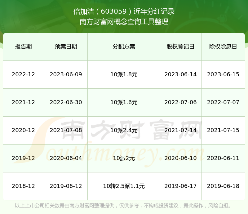 倍加潔最新一次公布的分紅方案:10派1.8元。
