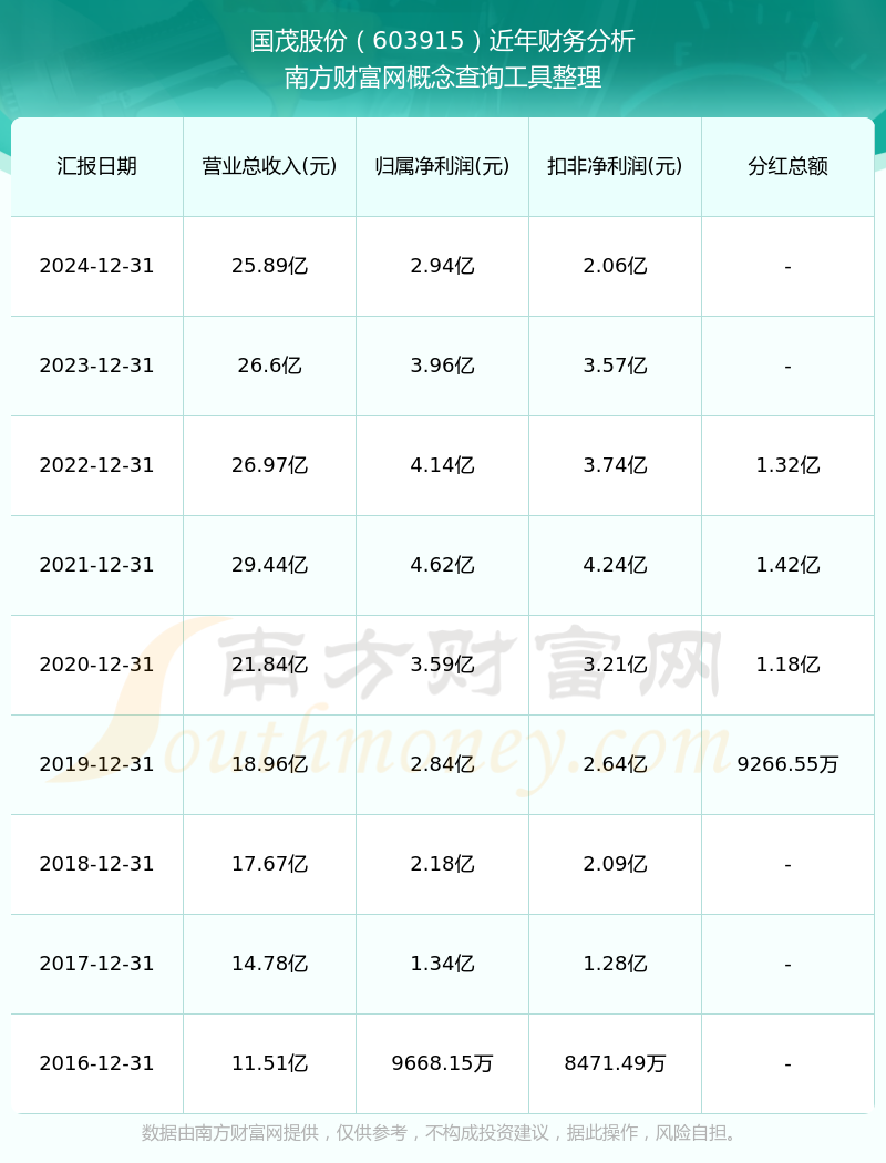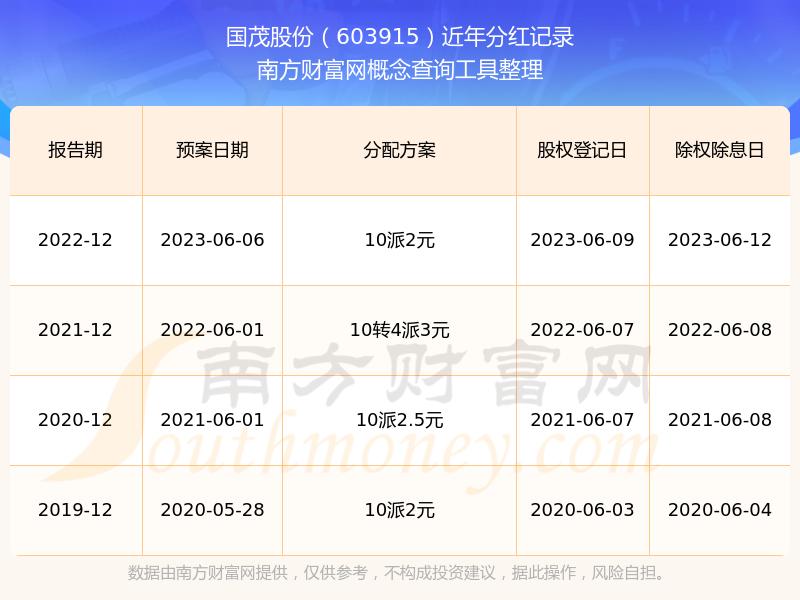 國茂股份歷年分紅派息情況如下表所示: