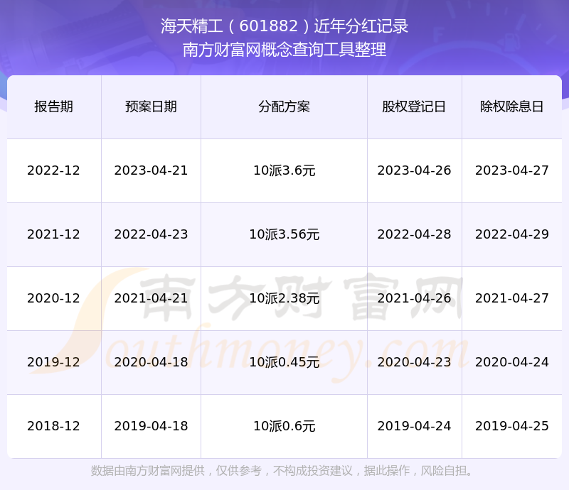 海天精工最新一次公布的分紅方案:10派3.6元。