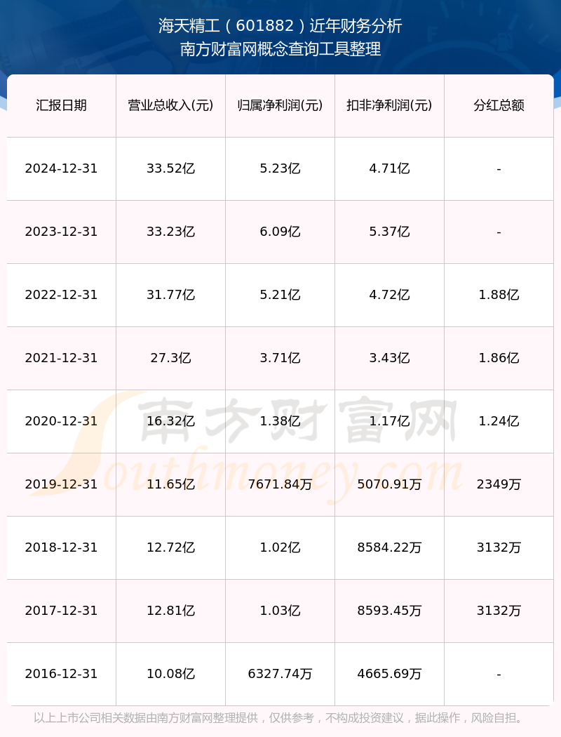近年海天精工分紅派息情況如下表所示: