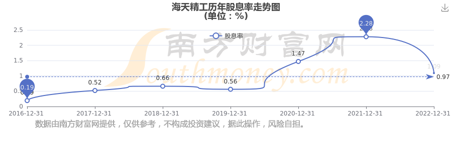 海天精工歷年股息率走勢(shì)如下圖: