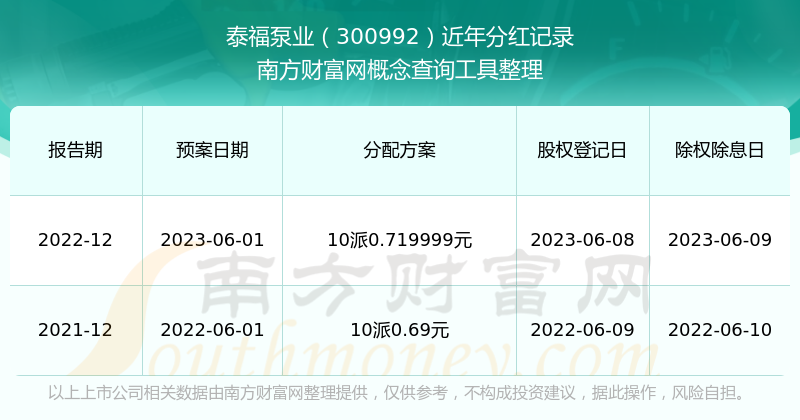 泰福泵業(yè)300992分紅時間: