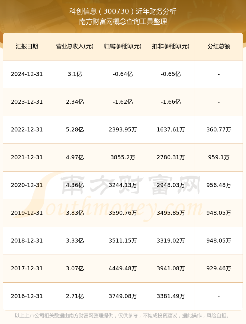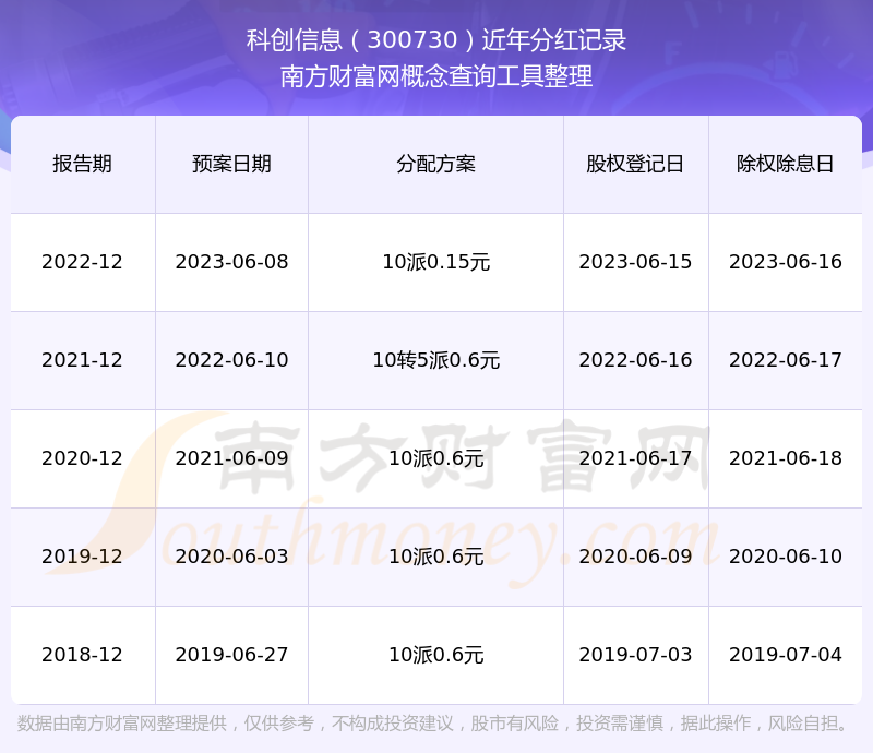 科創(chuàng)信息歷年分紅派息情況如下表所示: