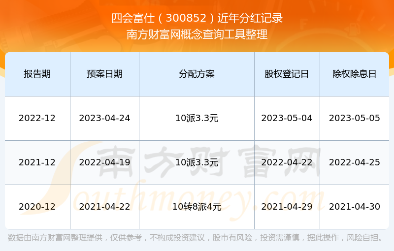 近年四會(huì)富仕分紅派息情況如下表所示: