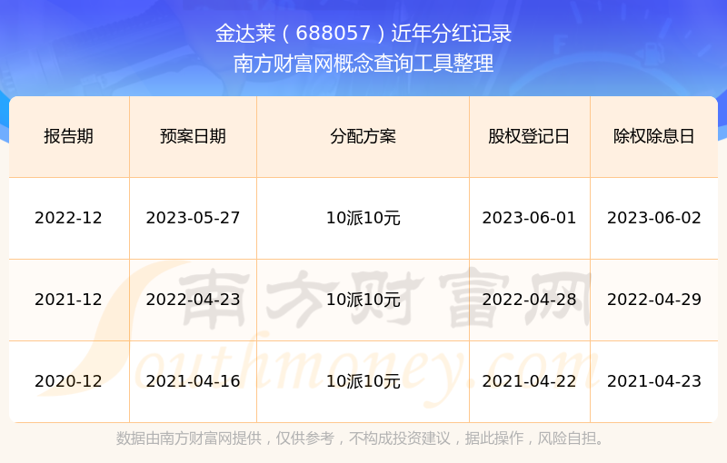 金達(dá)萊最新一次公布的分紅方案:10派10元。