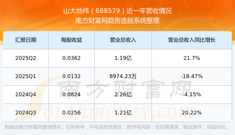 于2025年第二季度,山大地緯披露了其業(yè)績(jī)表現(xiàn),其中主營(yíng)業(yè)務(wù)收入1.19億元,相較于去年同期21.7%。此外,公司歸屬于母公司的凈利潤(rùn)為1448.5萬(wàn)元,同比增長(zhǎng)了137.07%。在扣除所有非經(jīng)常性損益后,凈利潤(rùn)1194.11萬(wàn)元,同比增長(zhǎng)235.38%。