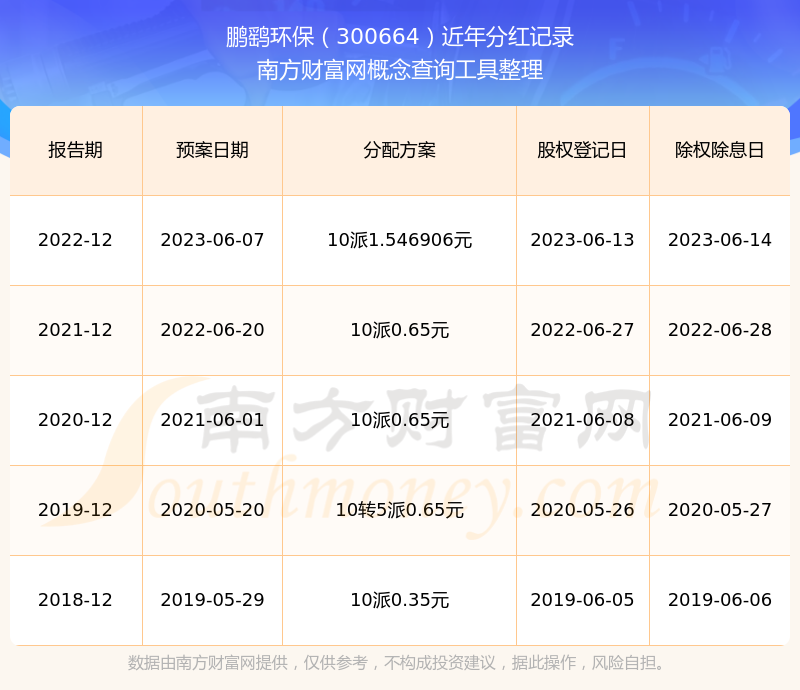 近年鵬鷂環(huán)保分紅情況如下表所示: