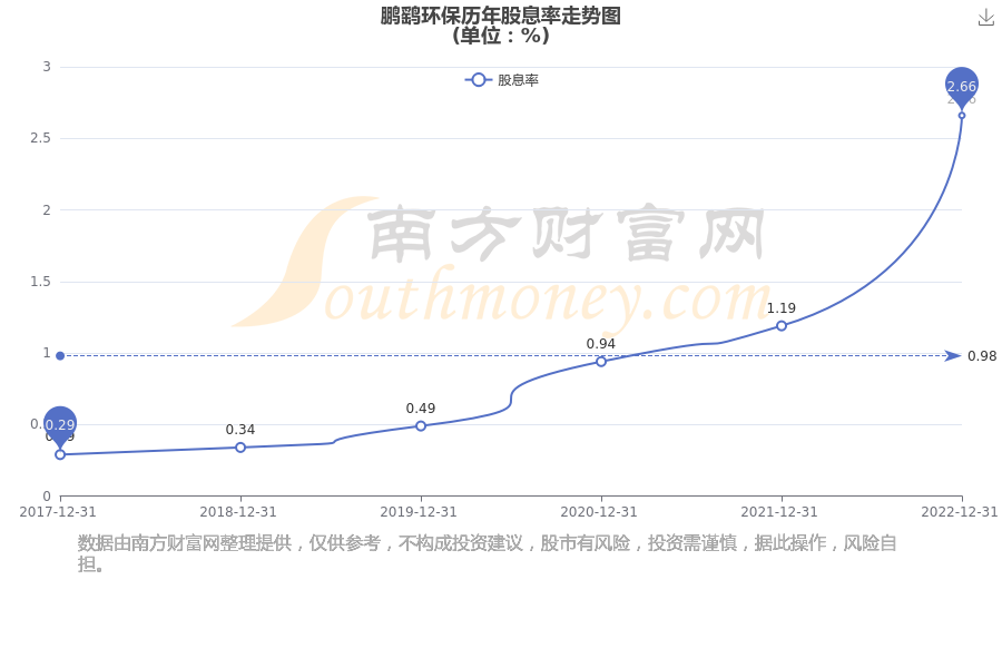 近年鵬鷂環(huán)保年度股息率走勢如下圖: