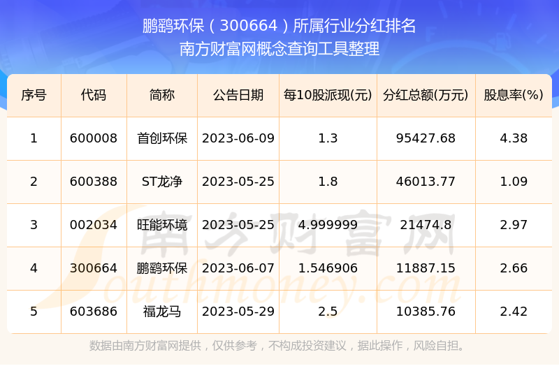 二、鵬鷂環(huán)保300664行業(yè)分紅排名